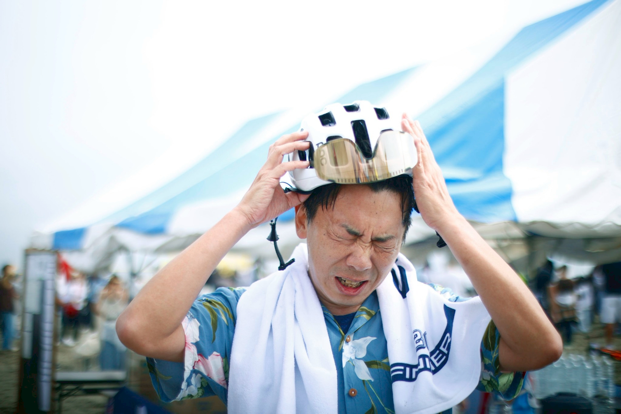登坂エリアはすべて乗車でクリア。周りはピチピチのサイクルジャージだらけなんですが、私は今年も「アロハシャツ」で参戦してます。(photo / HIBIKI )